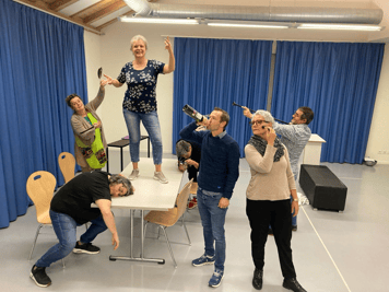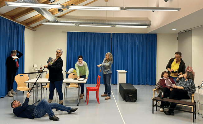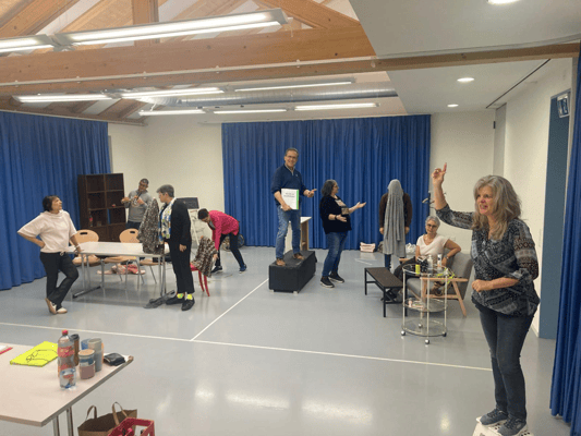 Für unser neues Theaterstück konnten wir Simon Kramer als Regisseur gewinnen und wir schauen den kommenden Monaten mit Spannung und viel Vorfreude entgegen. Drei Neuspieler:innen aus dem letzten Jahr bleiben zum Glück weiterhin in unserem vergnügten Team und eine Statistin konnten wir mit dem Theater-Fieber so infizieren, dass sie nun auch in eine Rolle mit Text schlüpfen wird.