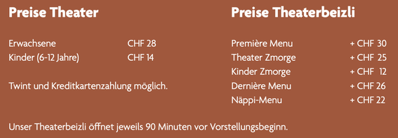 Unser Theaterbeizli öffnet für Sie 90 Minuten vor der Vorstellung.